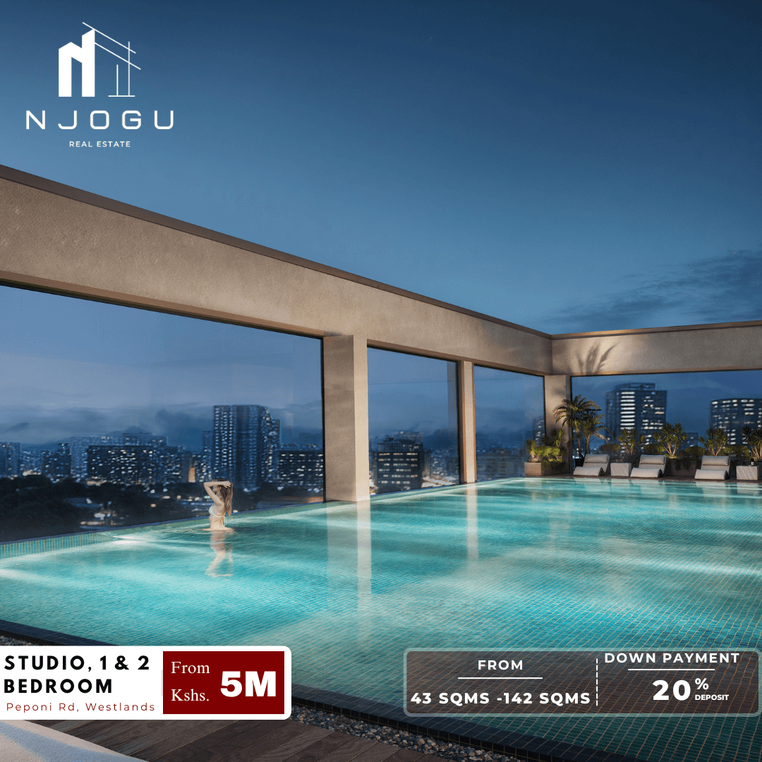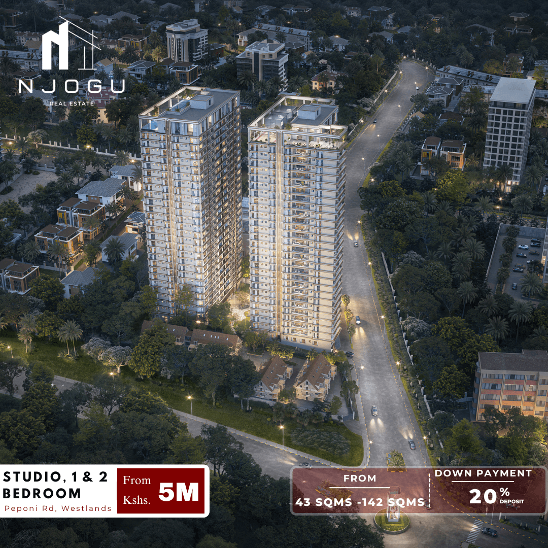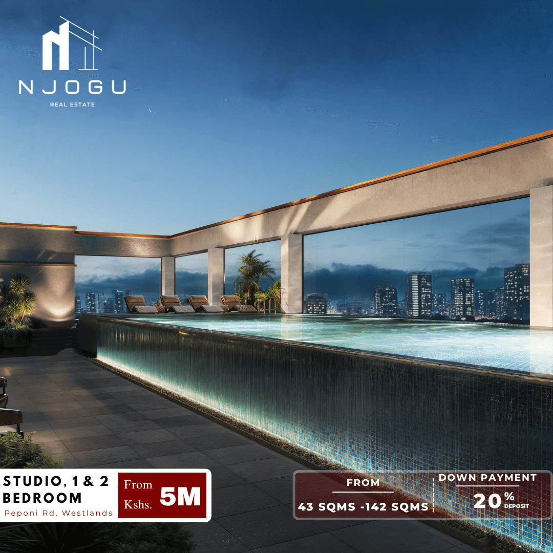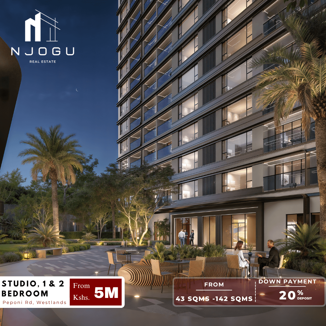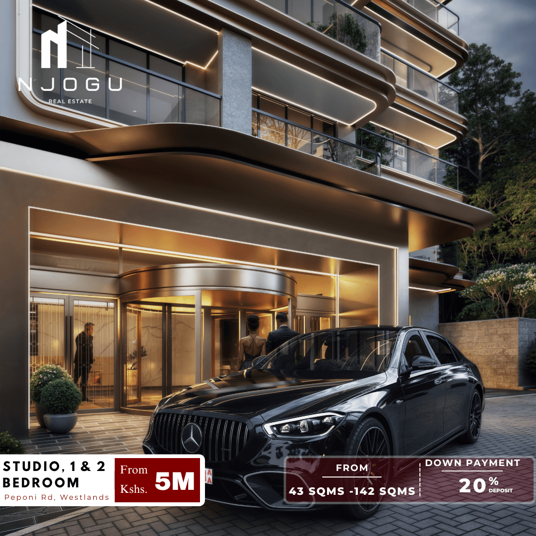 Discover Diplomat Residencies – ideally located just a short walk from the Westgate Roundabout along Peponi Road in Westlands. This elegant development offers stylish studios, standard 1-bedrooms, & 2-bedroom apartments from Kshs. 5M. Enjoy modern luxury, top-tier amenities, and the prestige of high-end living.